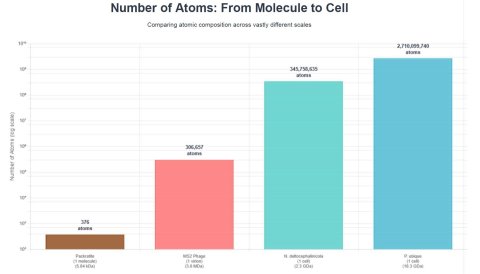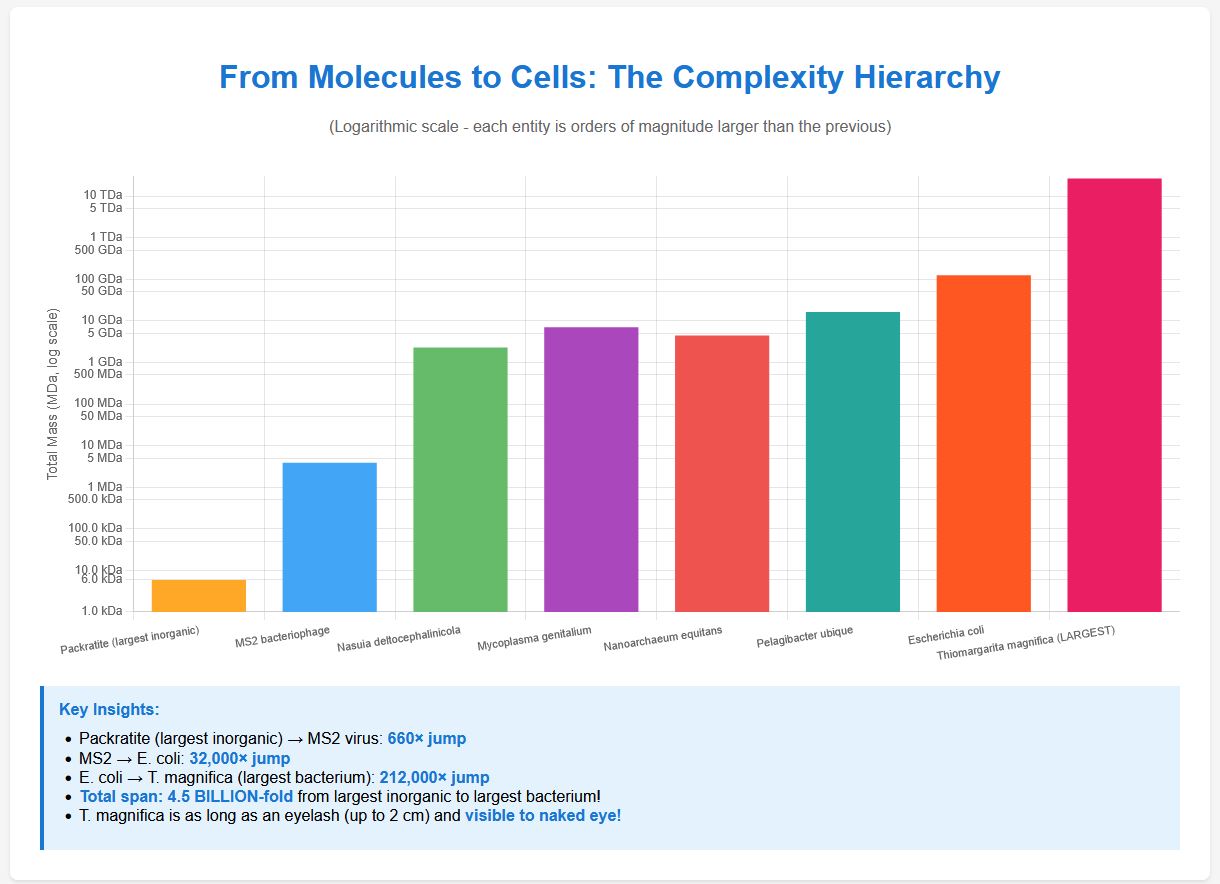 When you compare the size of the largest inorganic molecule to the sizes of just the one chromosome molecule in each of these cells, the gap is a chasm: