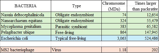 The smallest living thing has a molecule over 12,000 times larger than packratite.